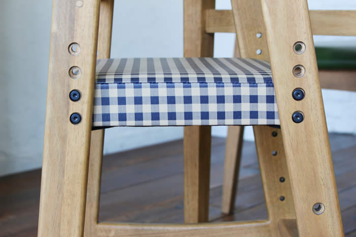 座面のチェック部分の白もあえて真っ白にはせず、ソフトヴィンテージを演出しました。