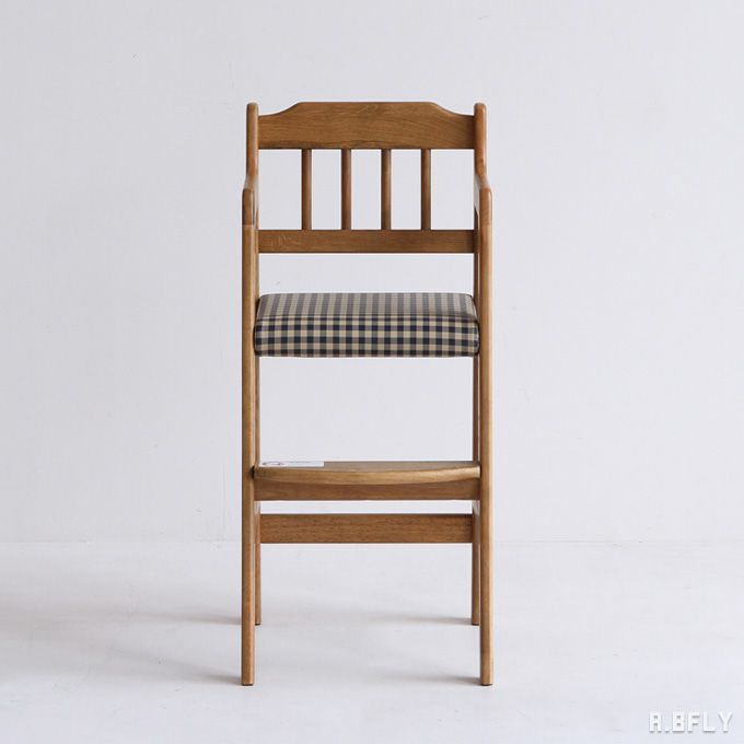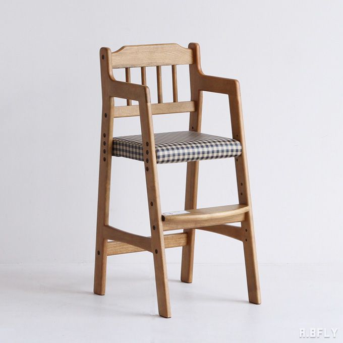 綺麗すぎない、粗さも含めて素材そのものの味わいを活かしたキッズ用ハイチェア。