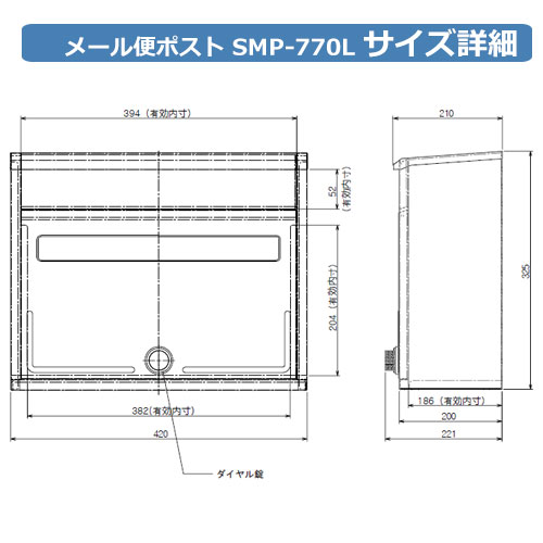 郵便ポスト 壁付けポスト メール便ポスト ステンレス製 SMP-770L 大サイズのメール便が対応可能のポスト! 販売条件 ◆詳しくはこちらをご確認ください カラー ・シルバー サイズ 本体:W360×D135×H370mm 投入口:W230×H41mm 仕様 壁付けポスト(前入れ前取出し/ダイヤル錠付きタイプ/木ネジ4個付属) ※スタンドポール取付可能 材質 ステンレス製 セット内容 ■メール便ポスト ステンレス製 SMP-770L 備考・注意 ※配送には実働約3日〜7日程度お時間が必要となる場合があります。
