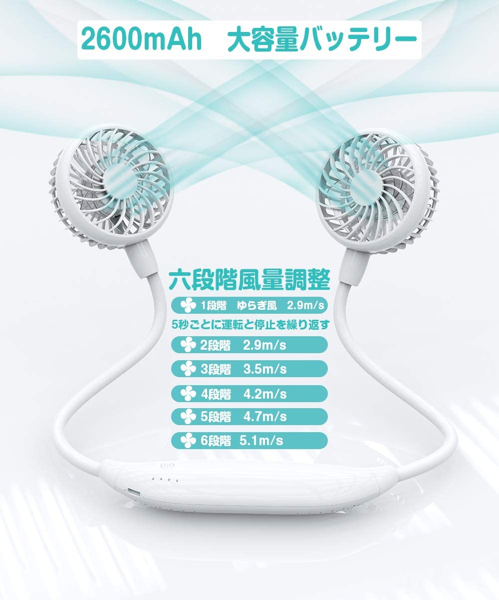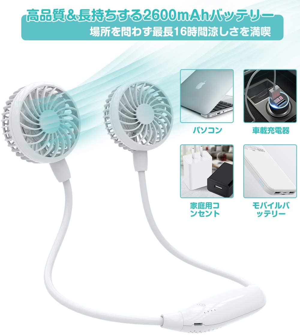 LG2600mAh(実際の計測値は2600mAhを超えています)のバッテリー(PSE認証&MSDS認証&METI日本経済産業省登録)を内蔵しており、1回のフル充電すると最大16時間の使用が可能で、夏のお出かけや、ちょっとした移動中でも手軽に涼しさを手に入れます。
